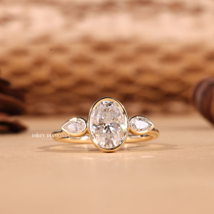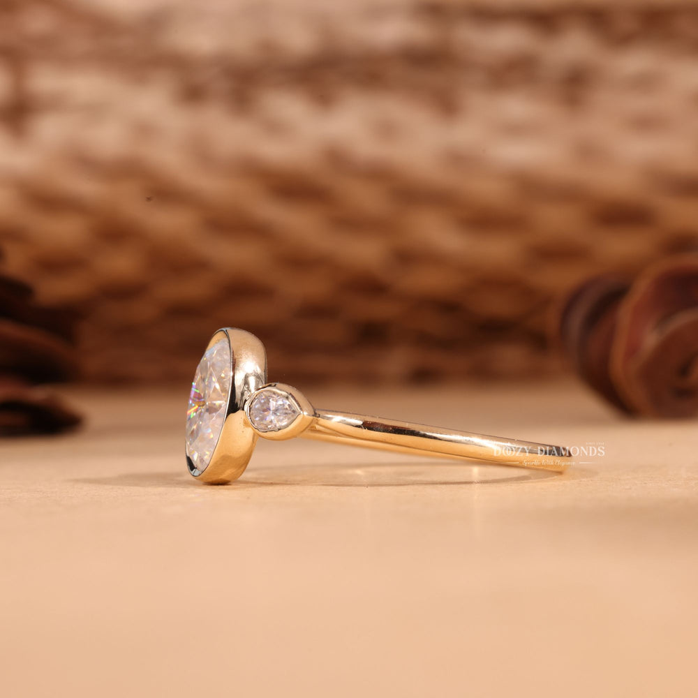 Every relationship has a past, present, and future, and three-stone rings symbolize each phase of the journey. These rings showcase one primary stone centered between two smaller stones, representing the unique love story you’re writing together.