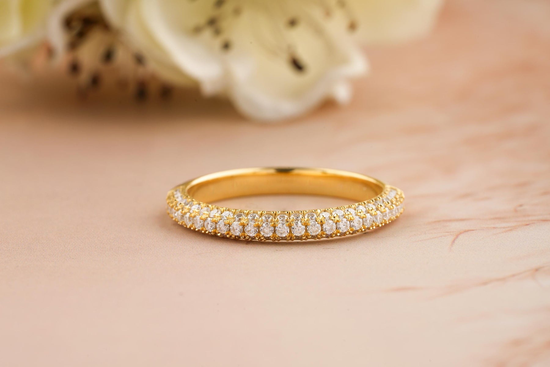 0.7CT Round Cut 3 Side Pave CVD EF/VVS Diamond Wedding Band For Women