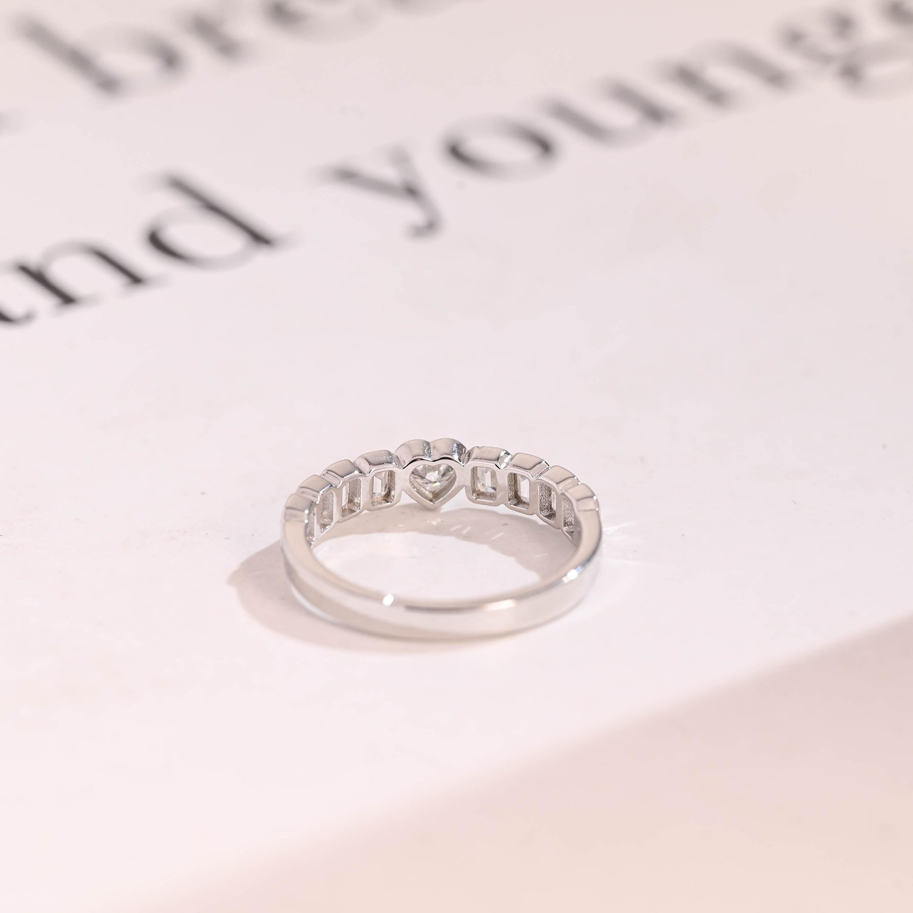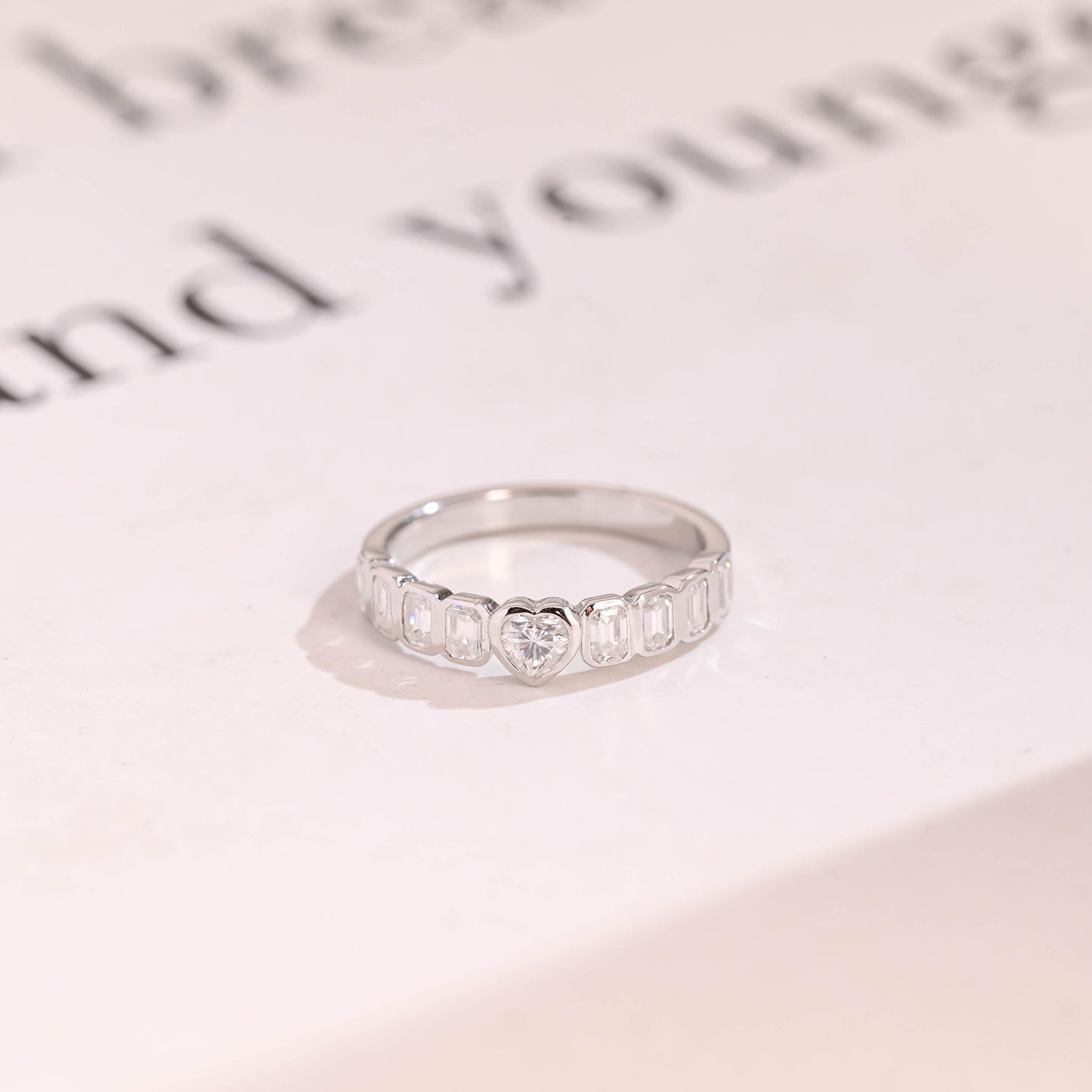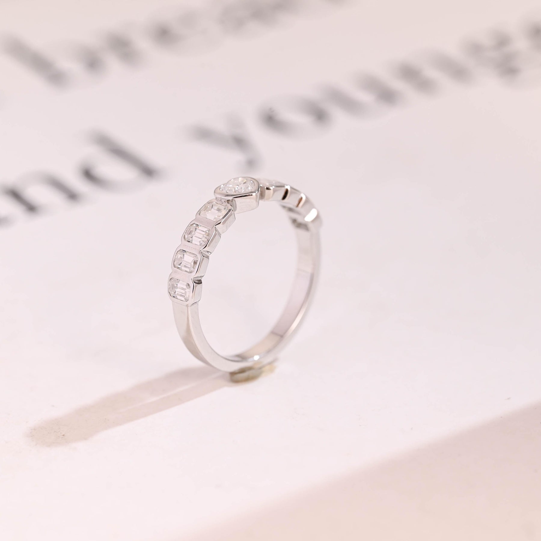 1.5CT Heart & Emerald Cut Bezel Set CVD EF/VVS Diamond Wedding Band Fo