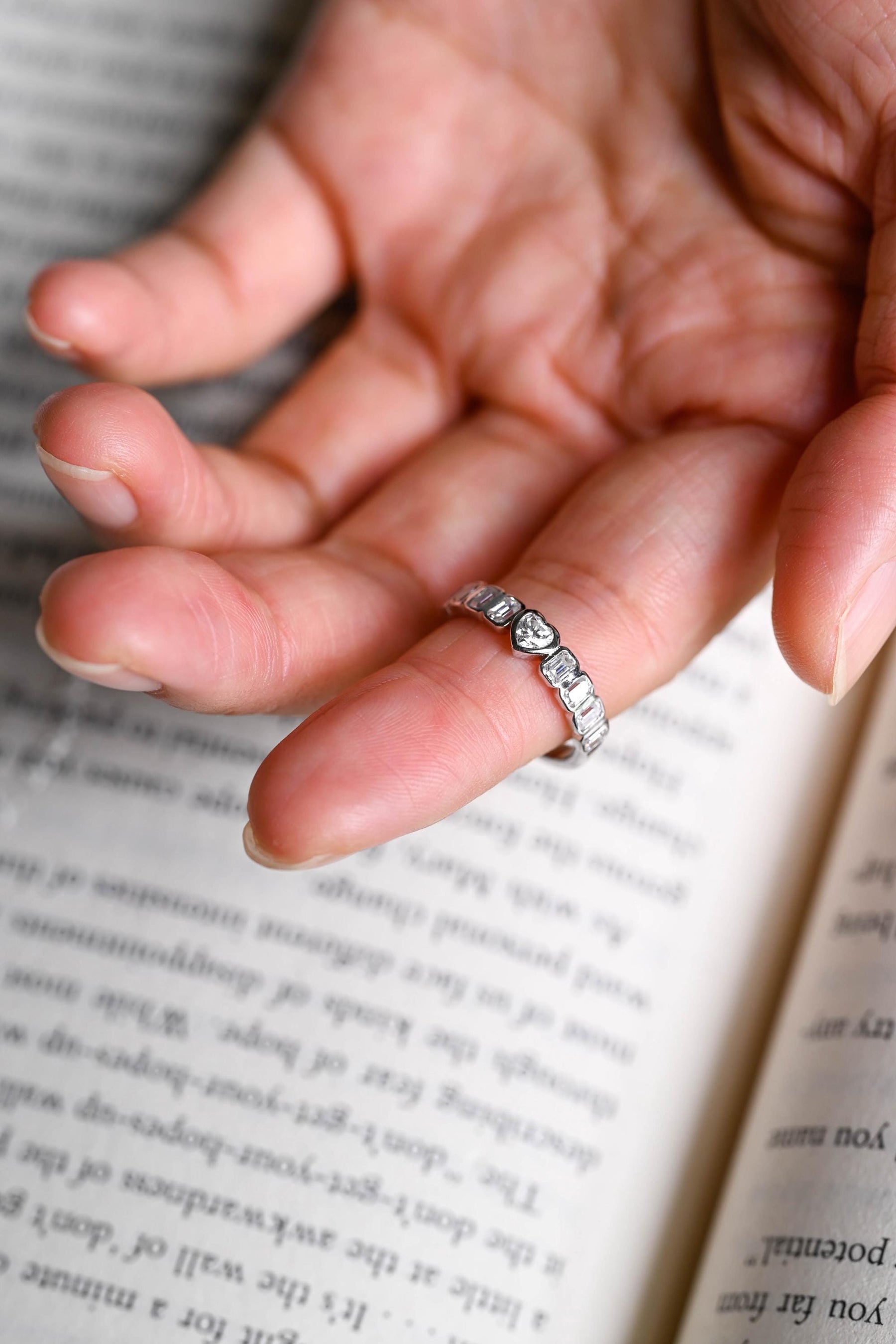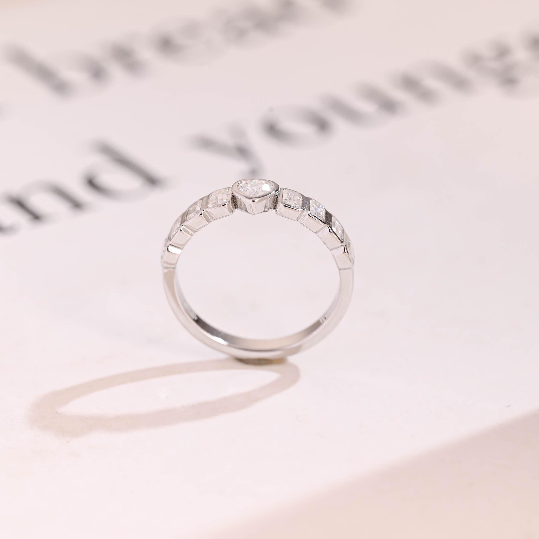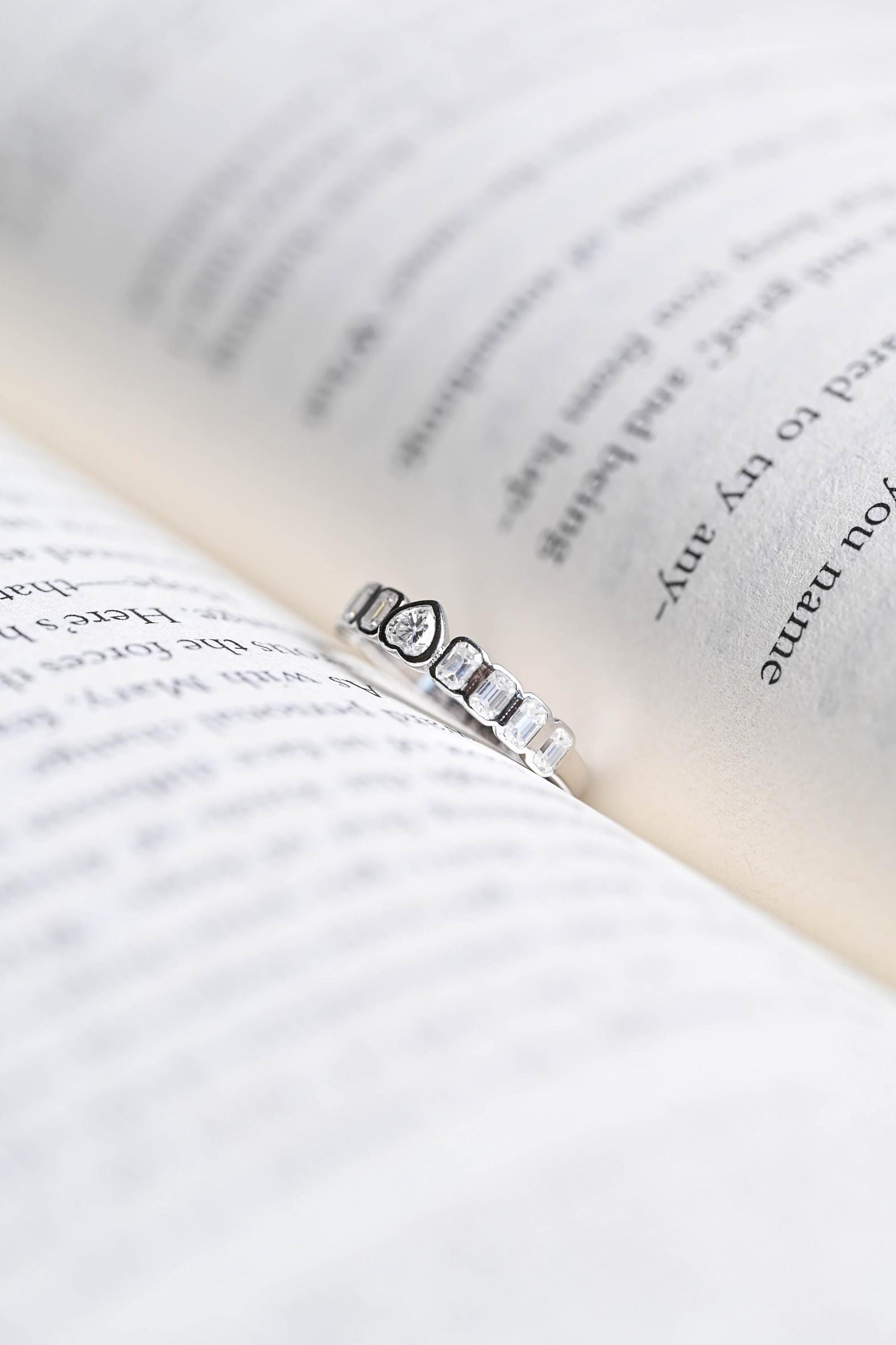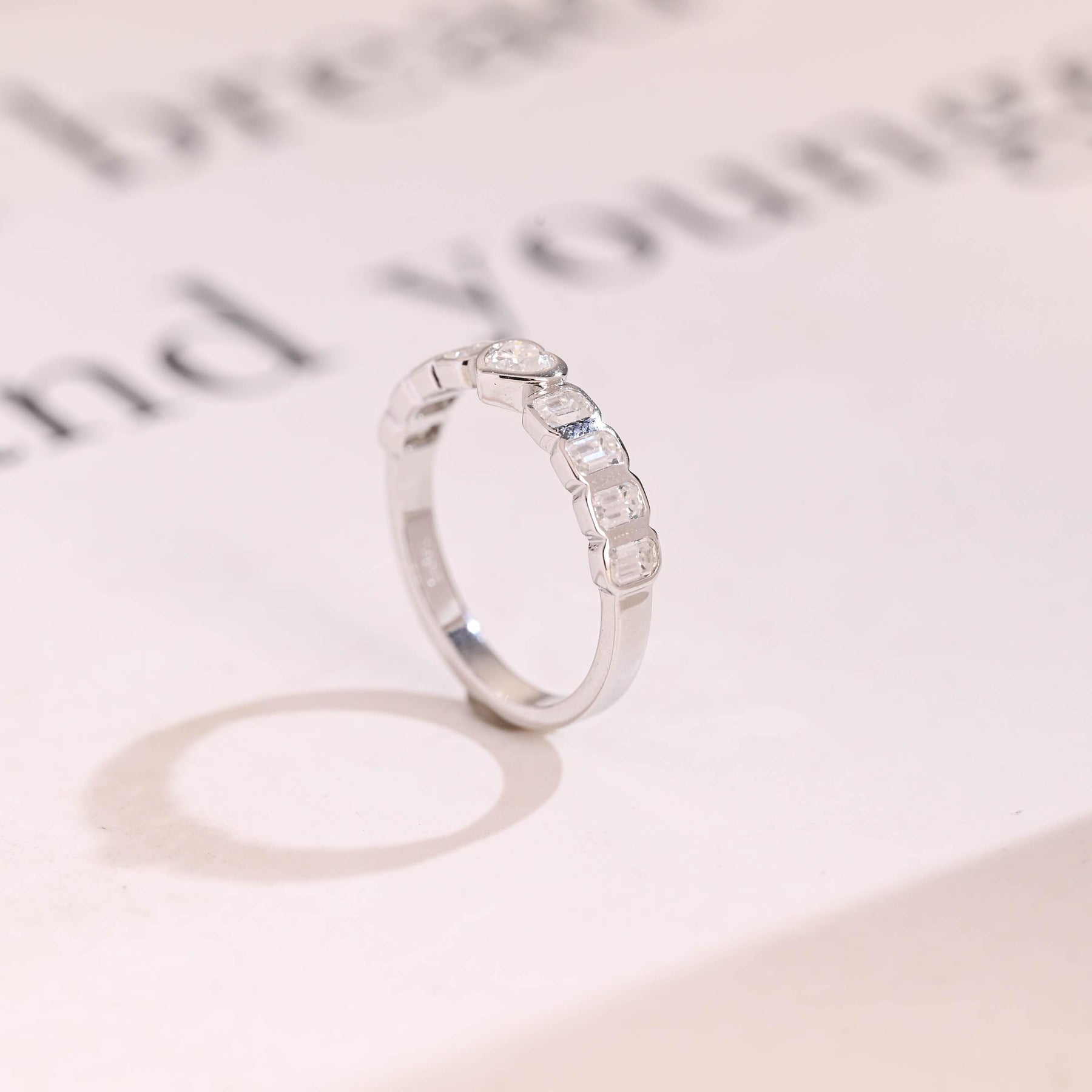 1.5CT Heart & Emerald Cut Bezel Set CVD EF/VVS Diamond Wedding Band Fo