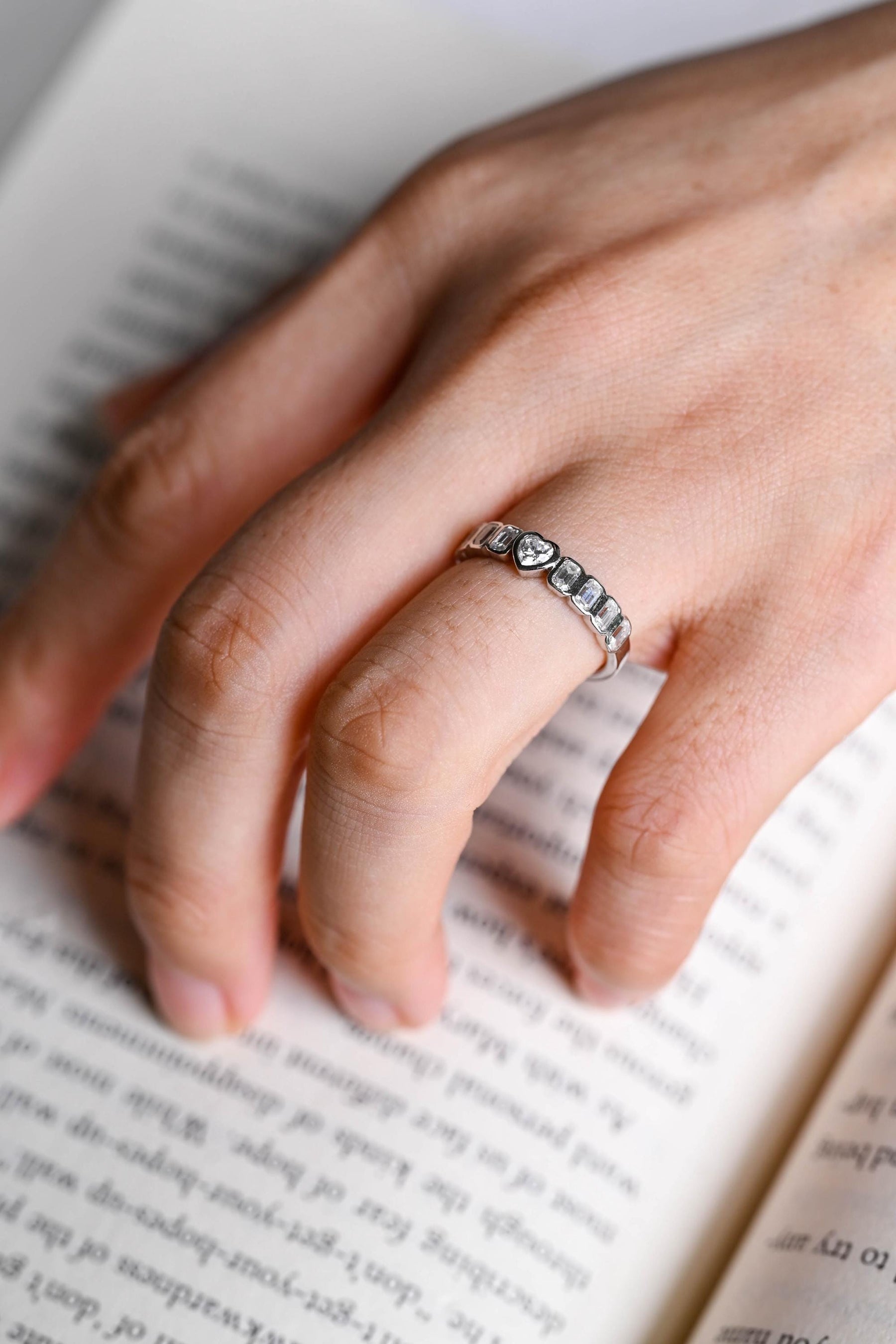 1.5CT Heart & Emerald Cut Bezel Set CVD EF/VVS Diamond Wedding Band For Women