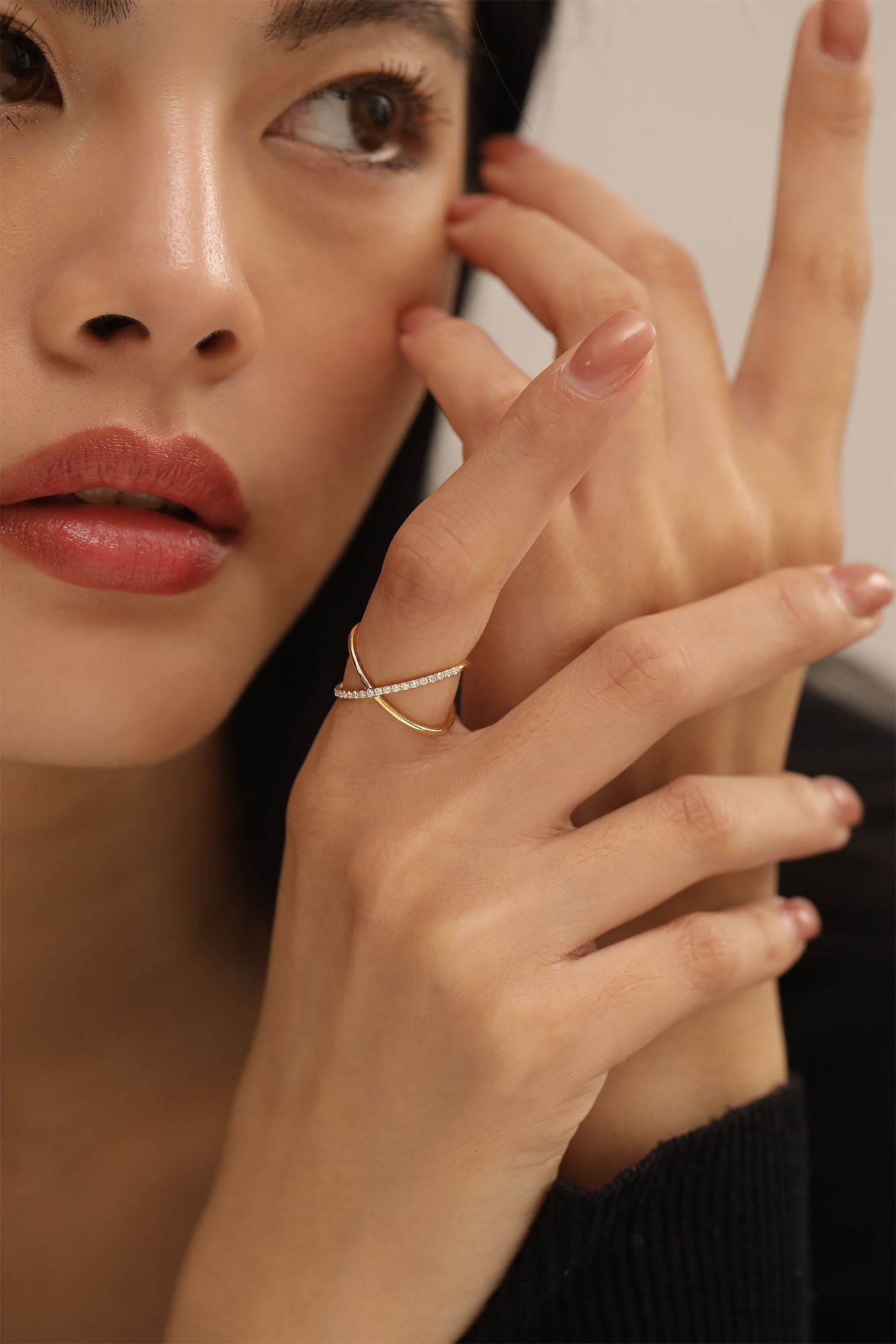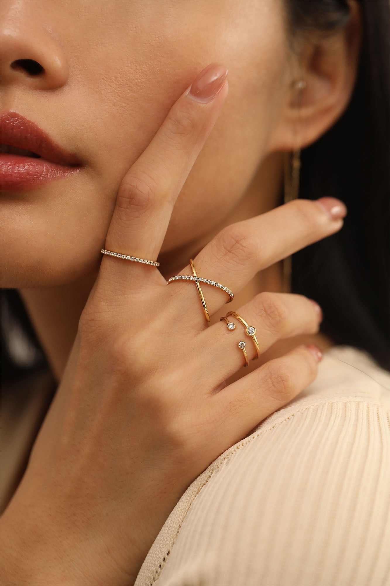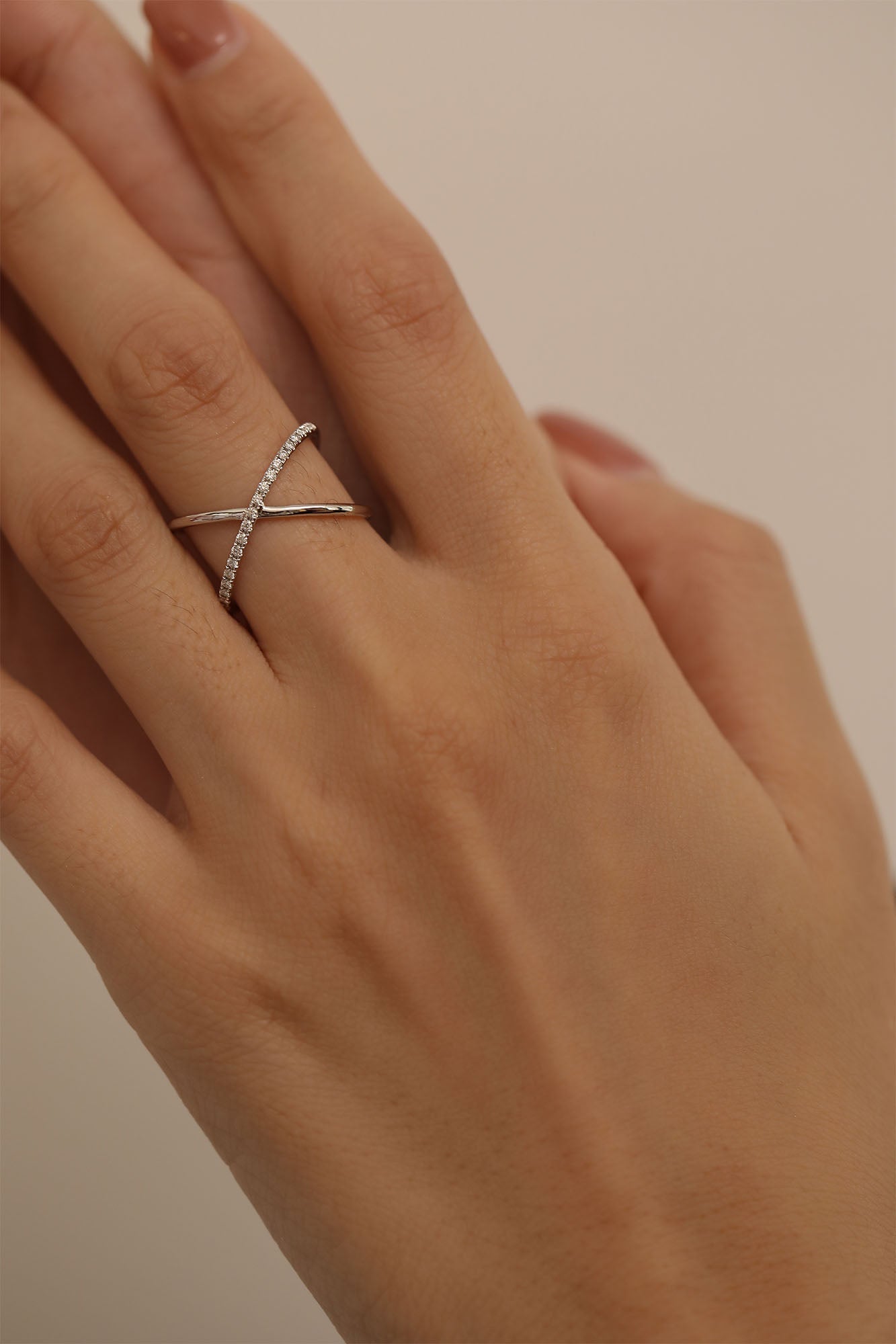 Criss Cross Moissanite Diamond Wedding Band in 14K Gold