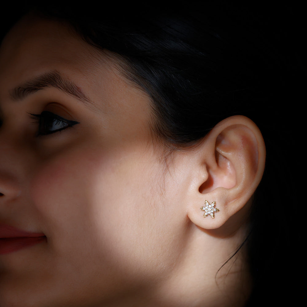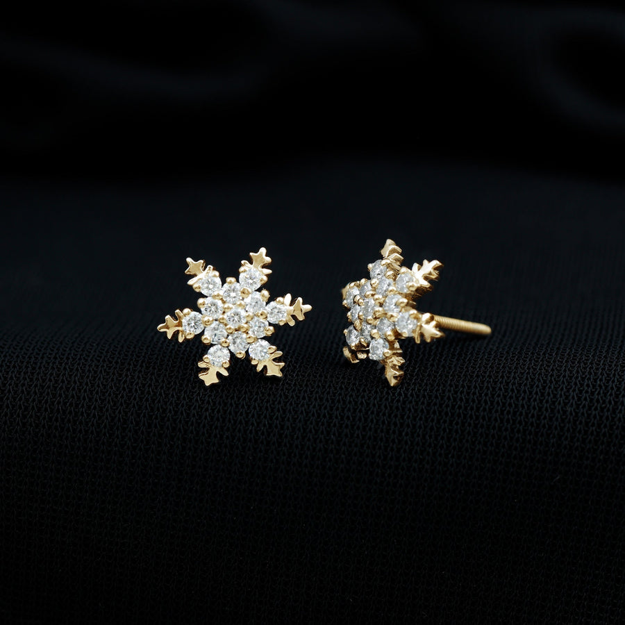 Round Cut Diamond Unique Snowflake Stud for Christmas Gift