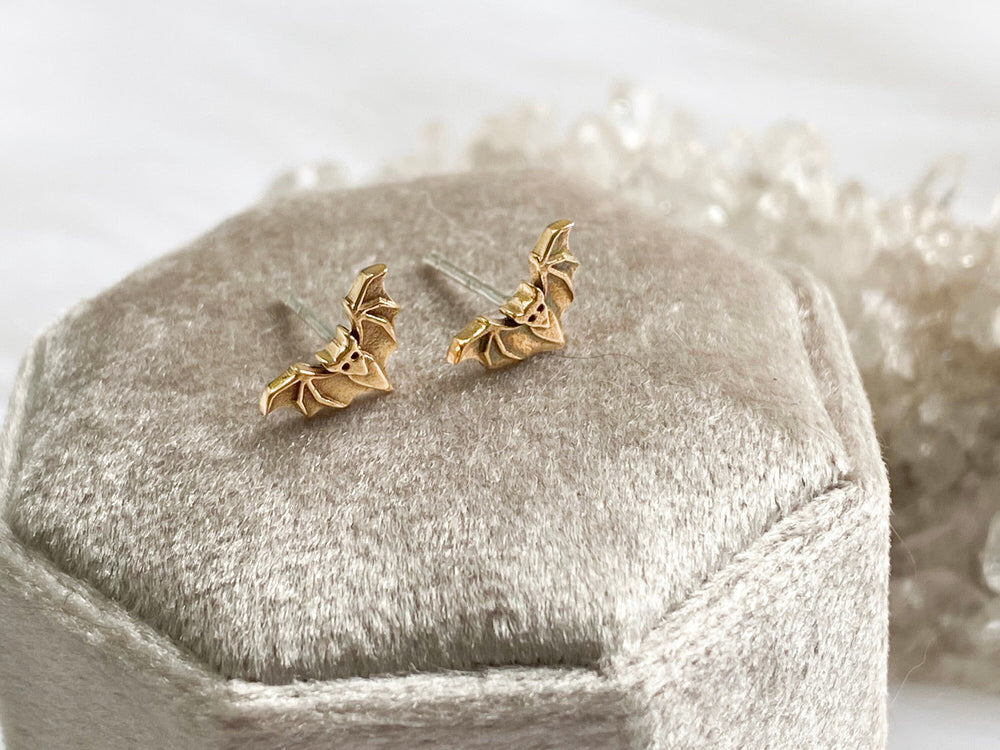 14K Solid Gold Bat Stud Earrings Gift for Halloween Gift