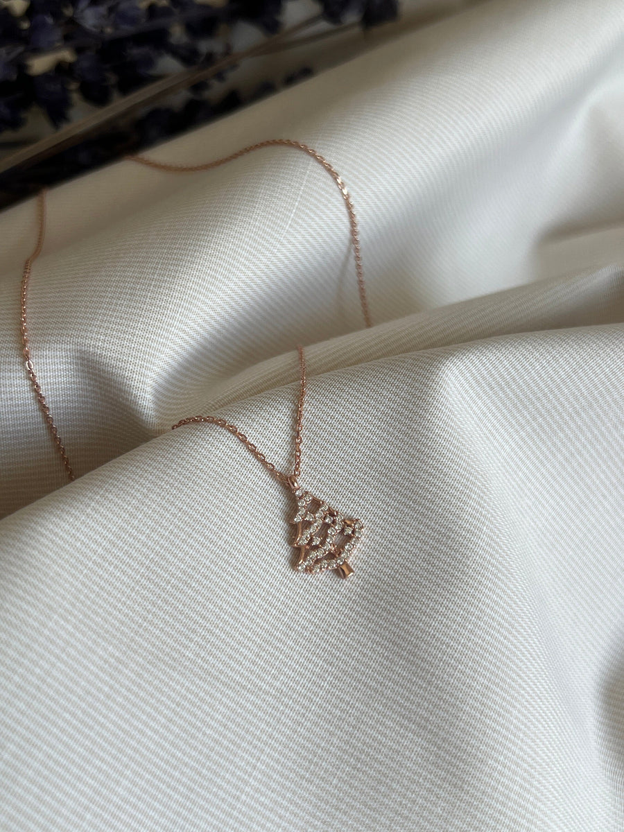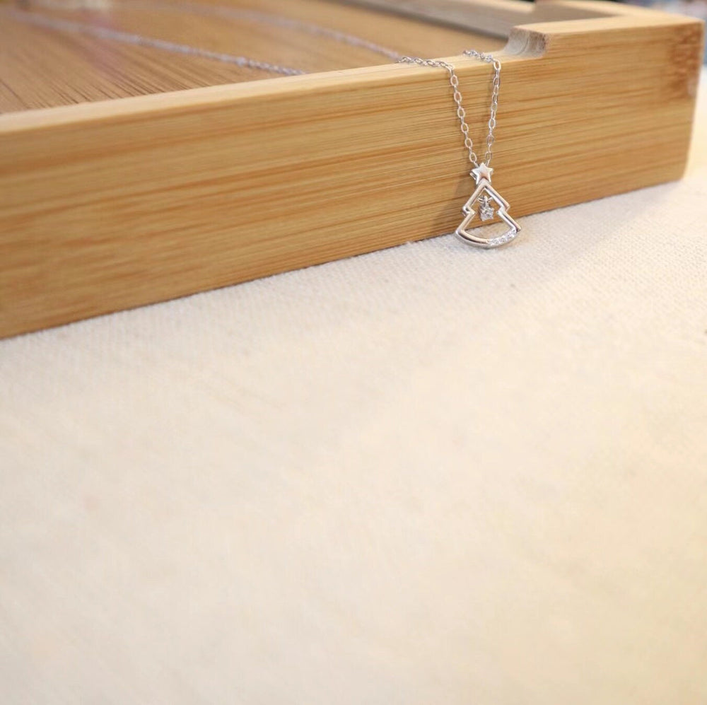 14K Gold Minimalist Xmas Tree Charm Necklace for Women