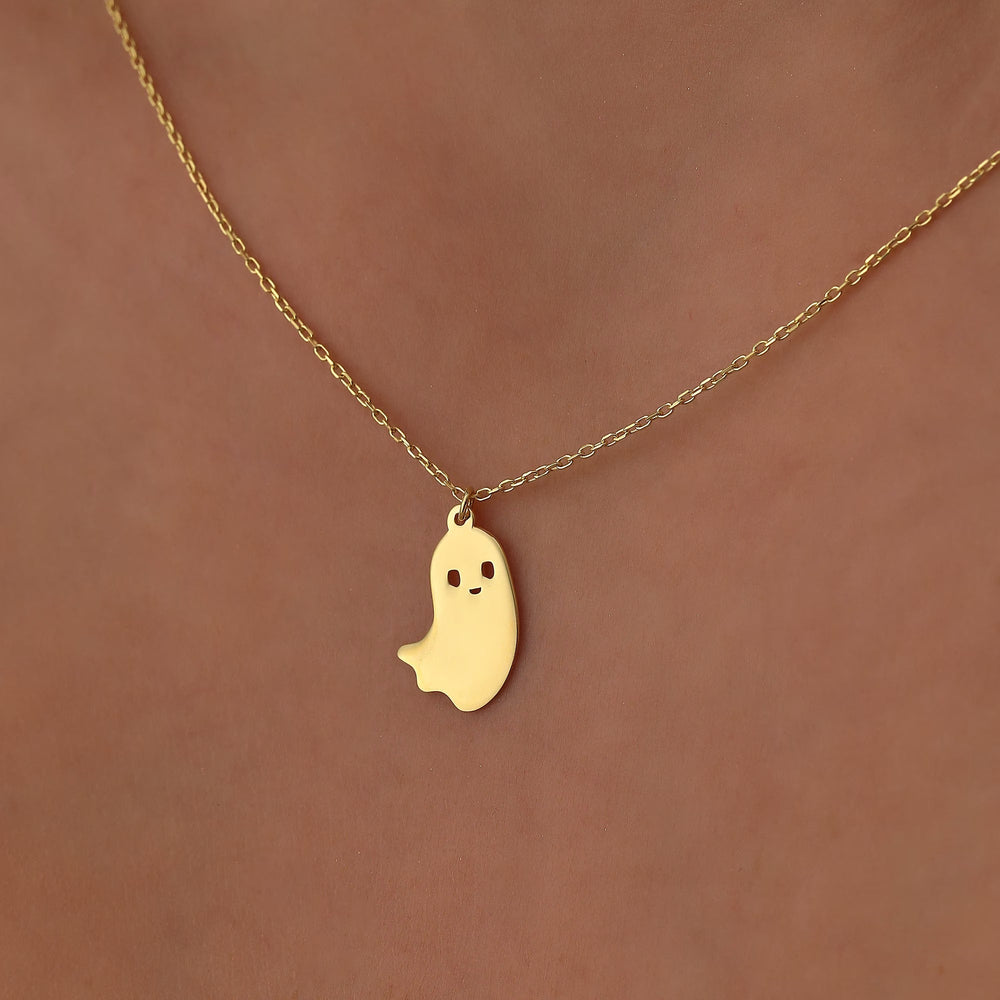 14K Solid Gold Ghost Pendant Necklace for Halloween Gift
