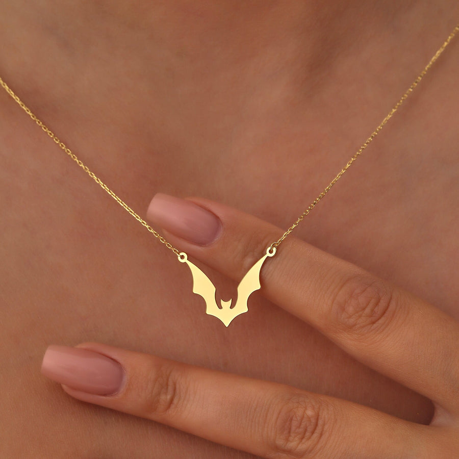 14K Gold Halloween Dainty Bat Necklace Gift For Her