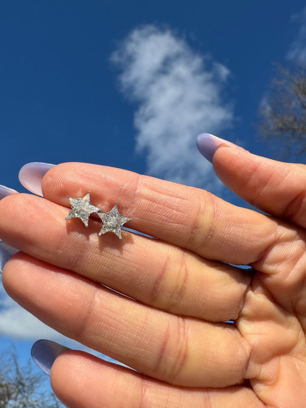 14k White Gold Star Moissanite Diamond Stud Earrings for Women