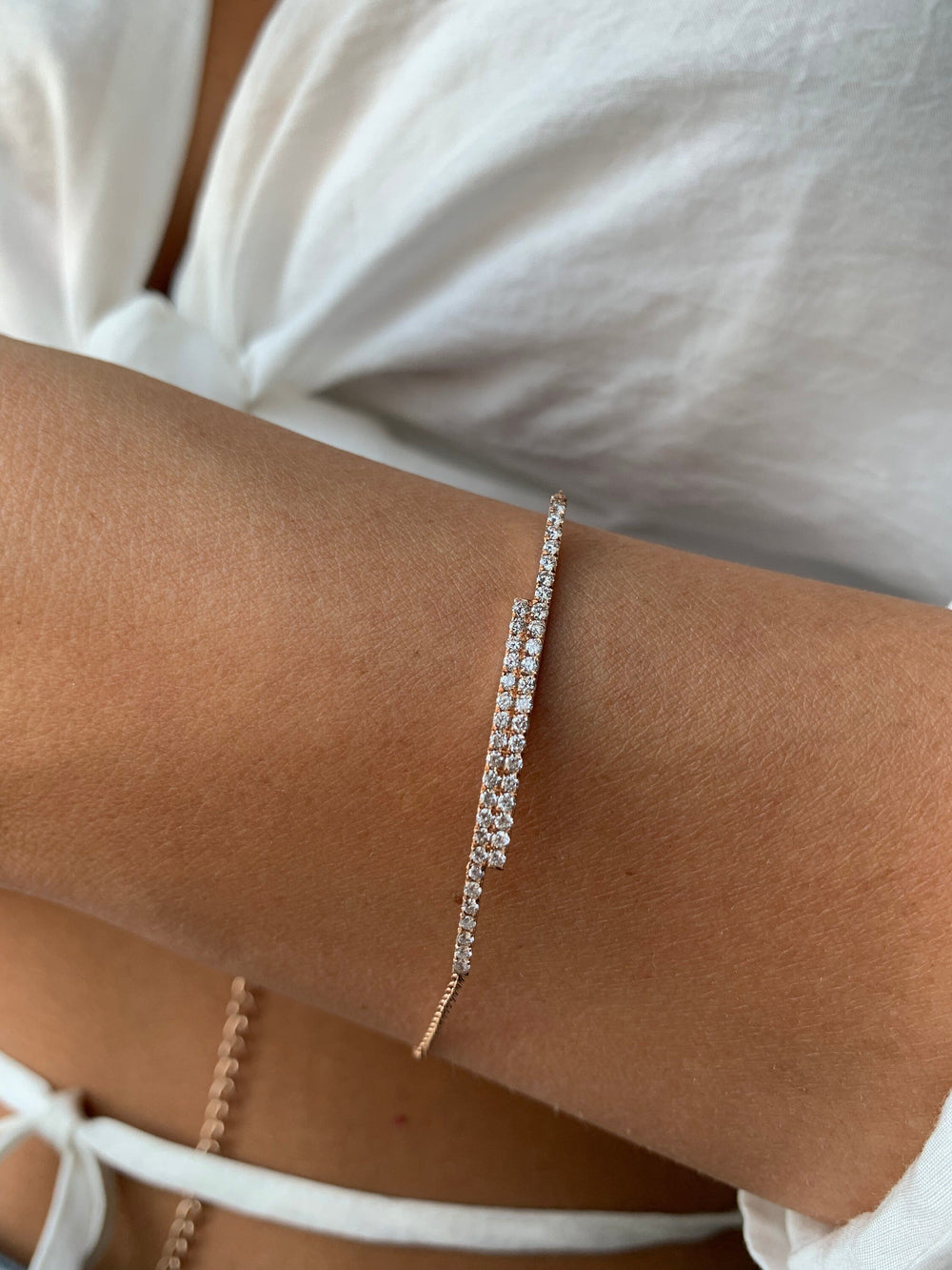Round Cut Diamond Bar Bracelet For Women in Solid Gold