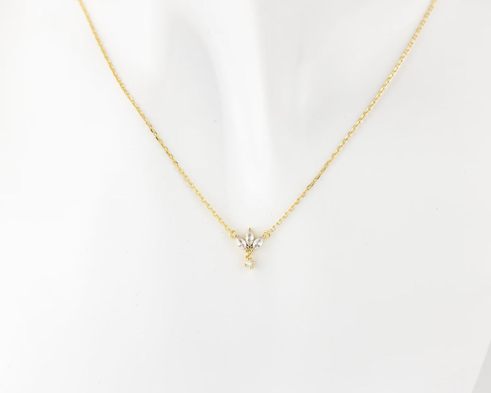 Round Cut Diamond Leaf Pendant Necklace Gift for Her
