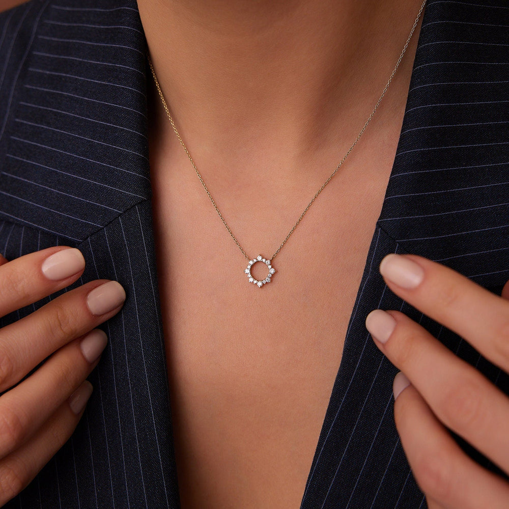 14K Solid Gold Round Cut Diamond Smile Necklace for Her