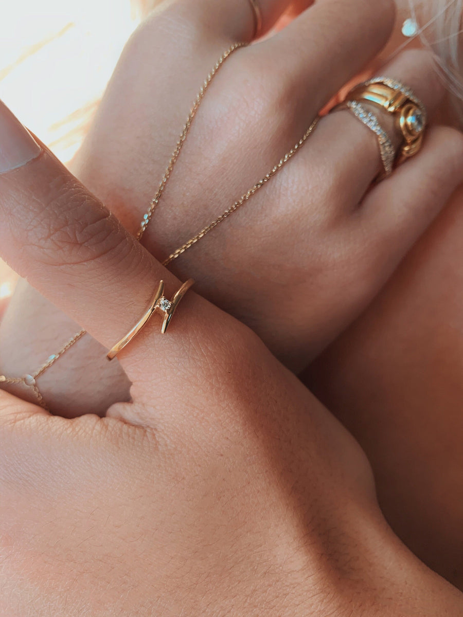Unique Diamond Ring 14K Gold Dainty Gift for Woman