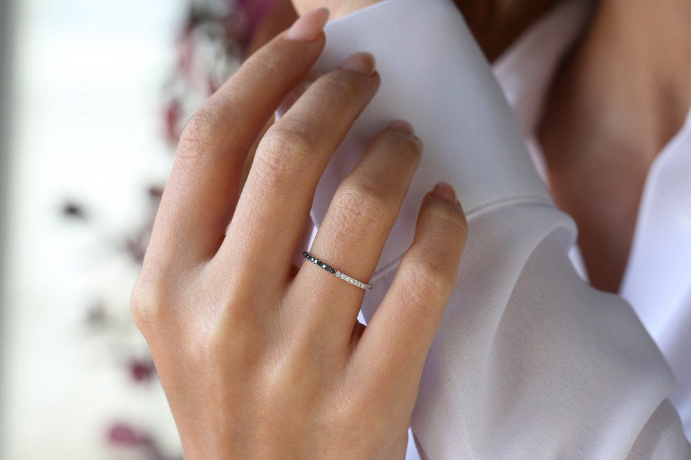 Round Cut Half Black Half White Diamond Full Eternity Band for Her