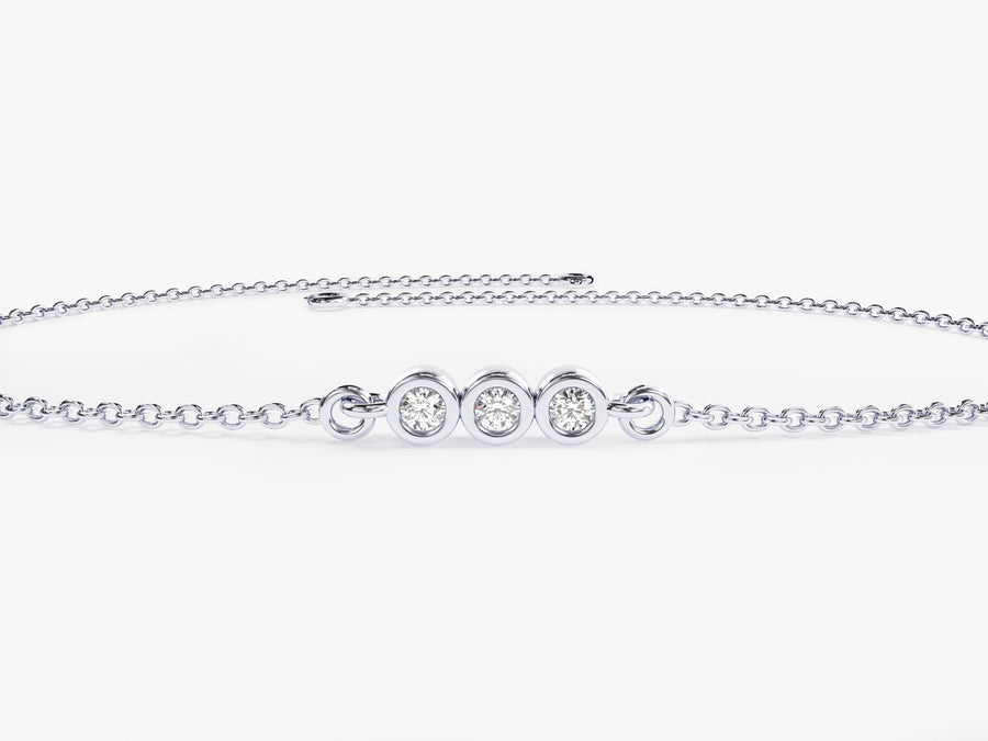 0.1Ct Bezel Set Round Cut Trio Diamond Bracelet for Her