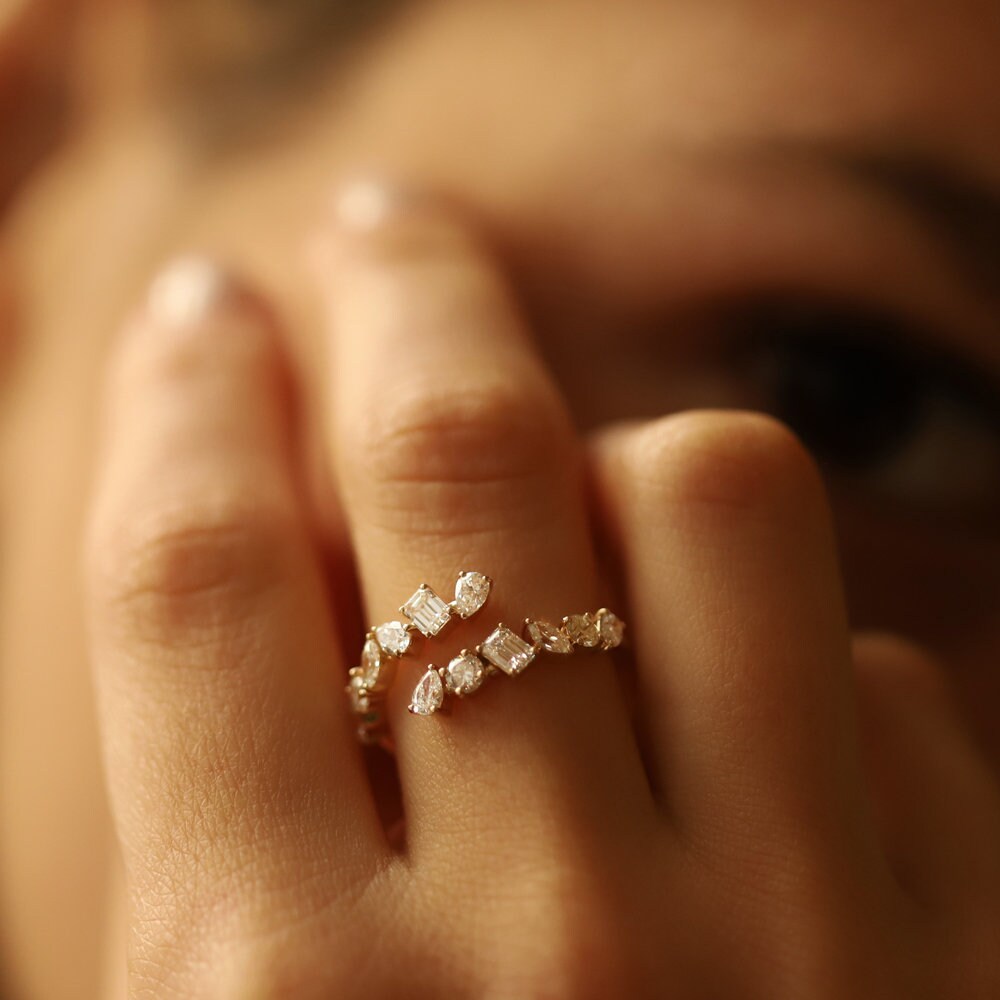 14k Solid Gold Cross Over Mix Diamond Statement Ring for Her
