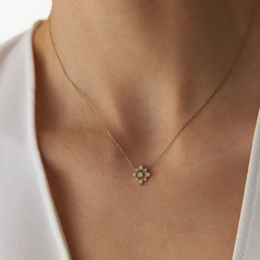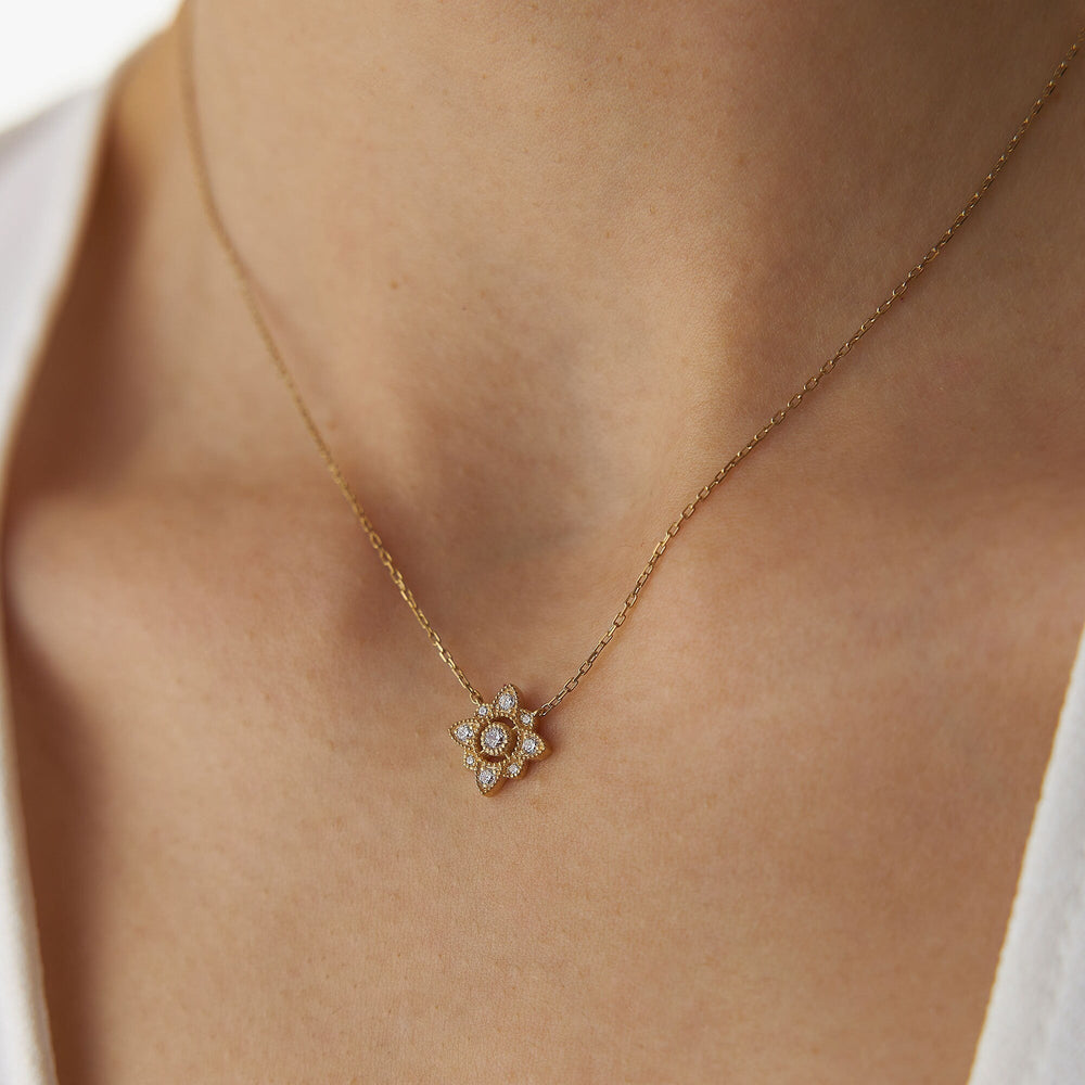 Round Cut Diamond Floral Vintage Necklace for Christmas Gift