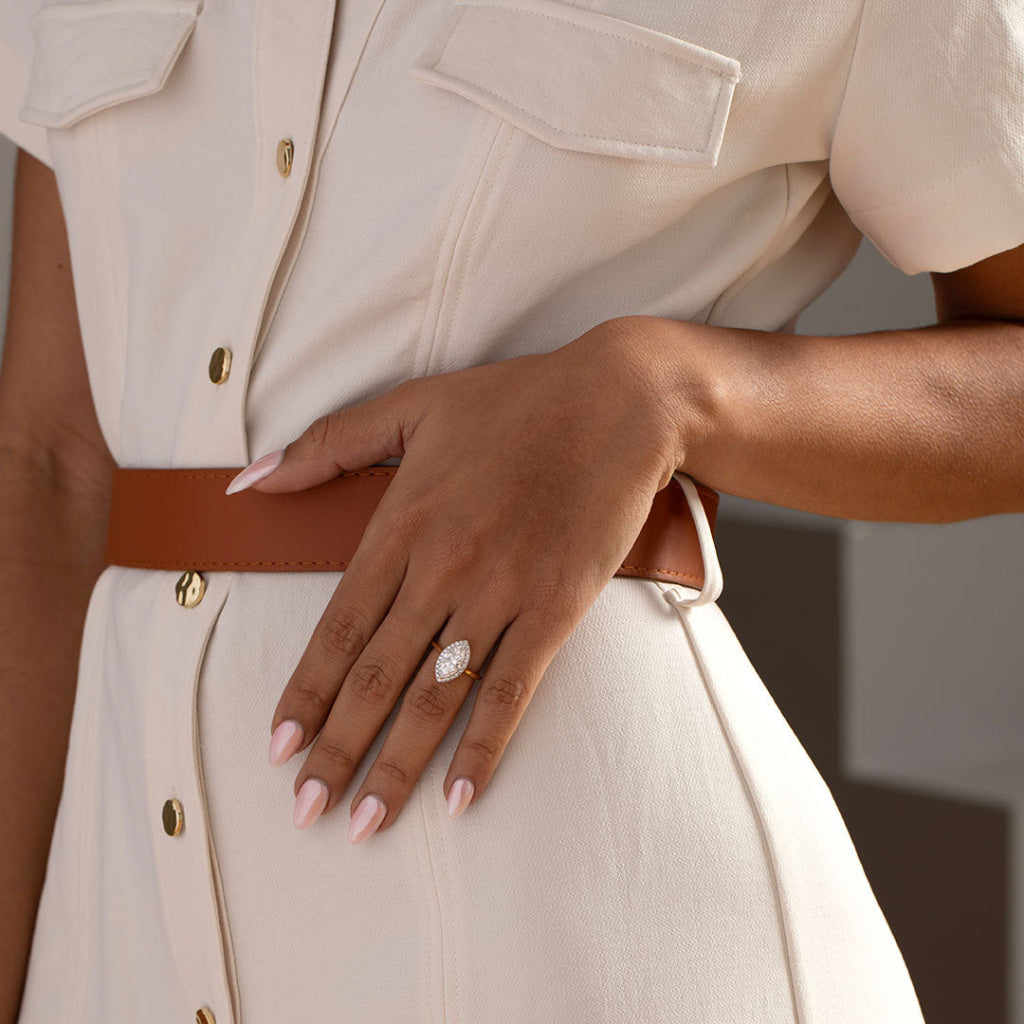 Not sure how your dream ring will look on your hand? With Valentina’s exclusive Trial Ring Service, you can order a replica of your chosen ring design made in Brass with CZ diamonds for only $99.