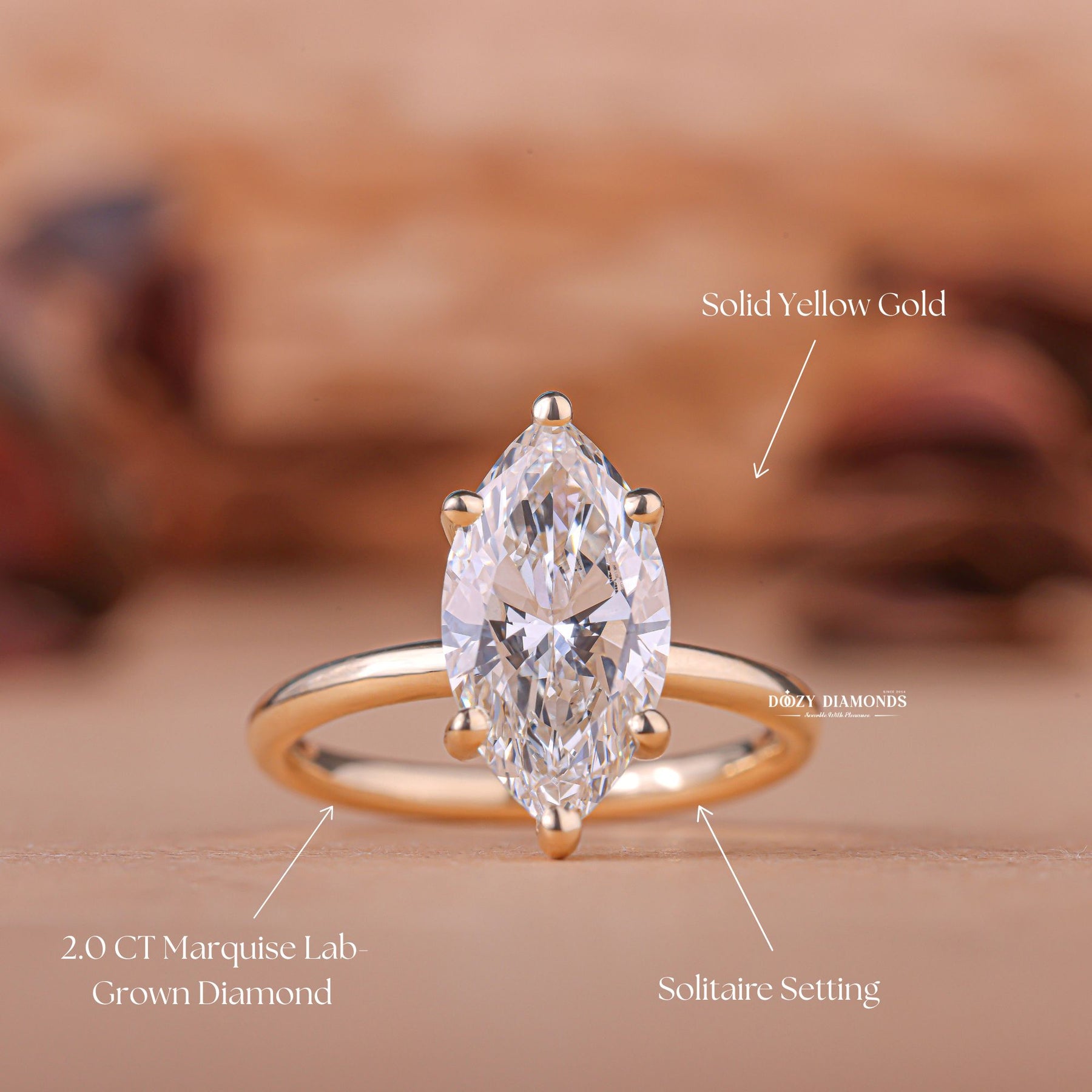 ✥ The Lab Grown Diamond Solitaire Engagement Ring Shown in the Picture a Beautiful 2.0ct Marquise Cut E-Color, VS2-Clarity CVD Lab Grown Diamond.