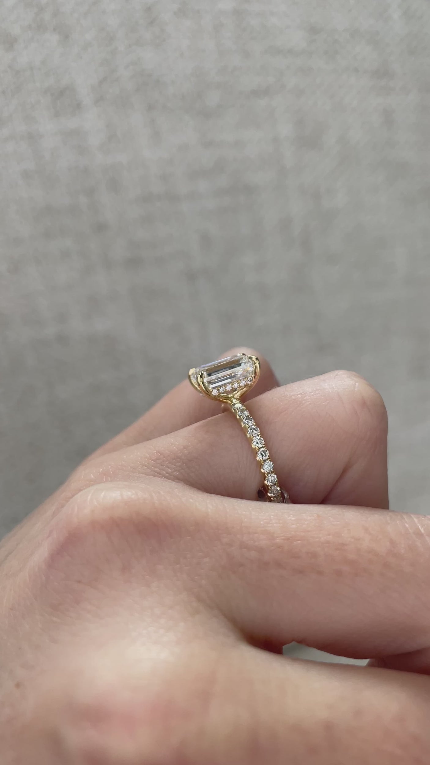 1.64-3.64 CT Emerald Cut Lab Grown Diamond Hidden Halo & Pave Engagement Ring