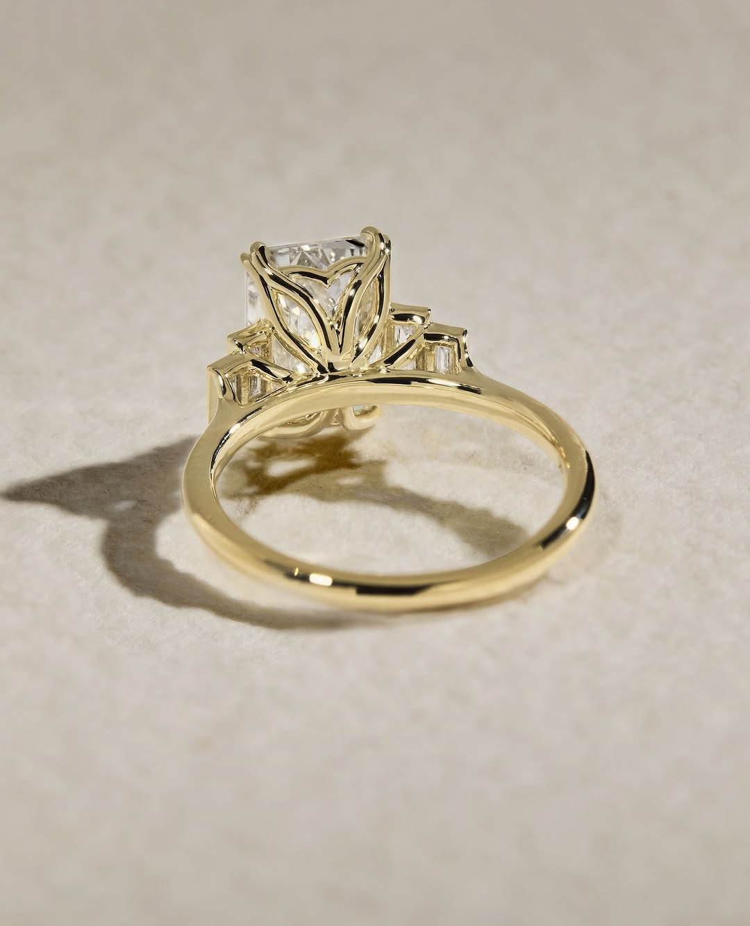 Radiate elegance with this 2.50CT Emerald Cut Lab Grown Diamond Five Stone Engagement Ring. A timeless lab grown diamond engagement ring crafted in gold, symbolizing purity and brilliance. Discover lab grown diamond jewellery, cvd diamond ring, and lab grown engagement rings gold.
